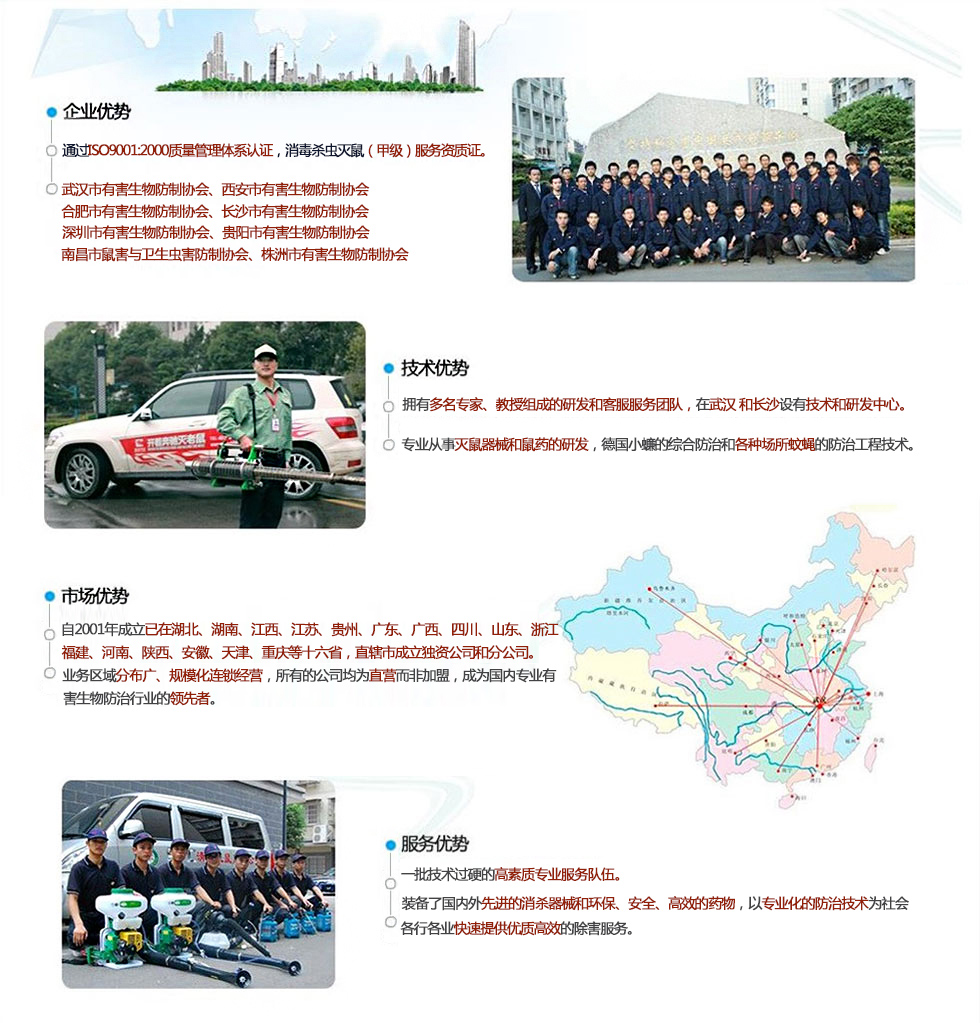 我們堅持“誠信、高效、安全、環(huán)保”的服務(wù)宗旨,所用器械均為世界優(yōu)質(zhì)產(chǎn)品,所用藥物均系國家藥檢部門和衛(wèi)生防疫部門批準(zhǔn)的安全、低毒的城市衛(wèi)生用藥,并根據(jù)具體作業(yè)環(huán)境和防治對象情況變化,制定具體防制方案,保證優(yōu)越的防治效果和人體安全。